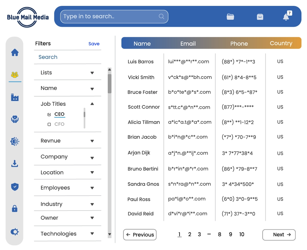 Blue Mail Media provides a pre-built and ready-to-use CEO email list, saving you a lot of time, resources, and money. We stand out from other data solution providers with the following data attributes: