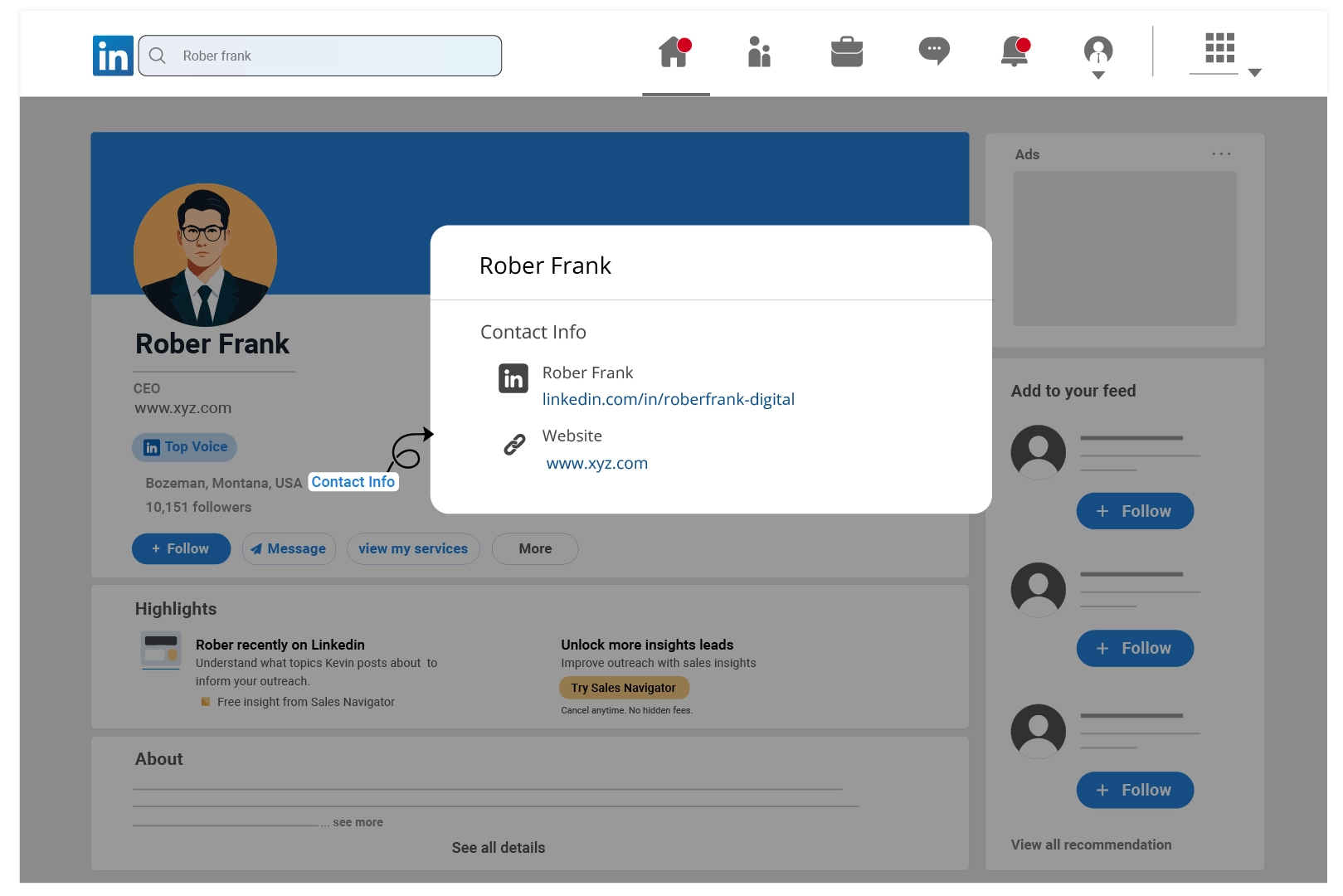 So, below are the ways that you can follow to get the CEO email address using LinkedIn’s free version: