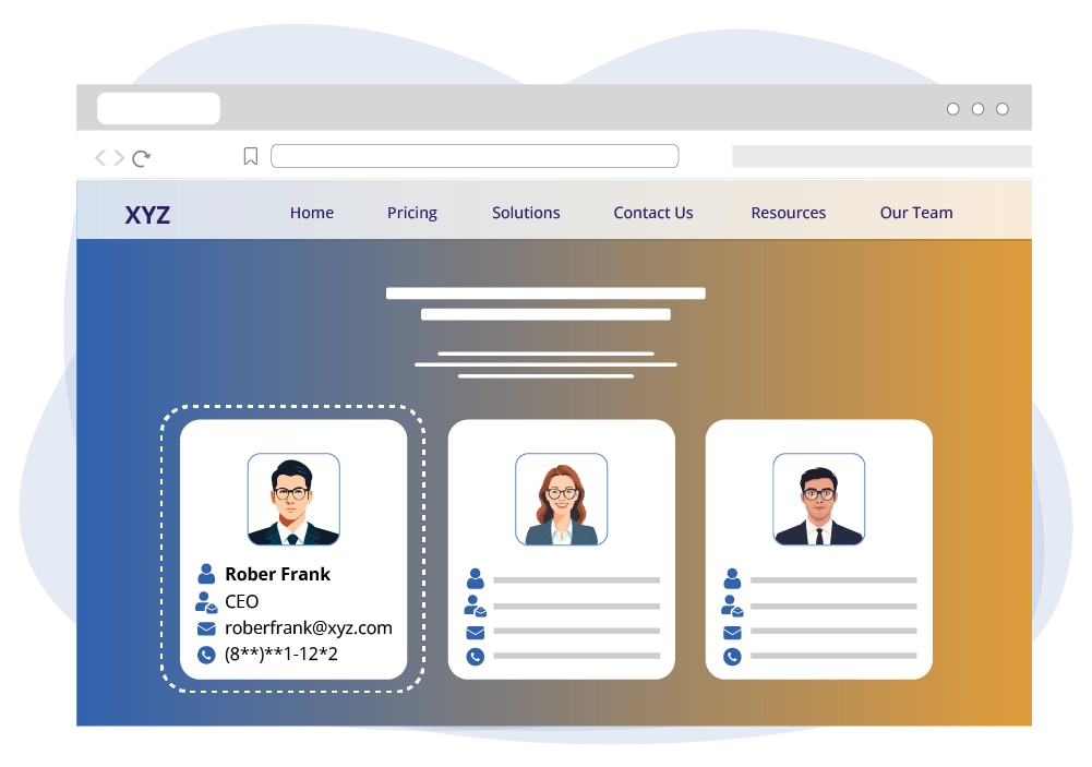 Visit the company’s website and check for the CEO email address in the “About Us” or “Contact Us” sections found on the website’s header.