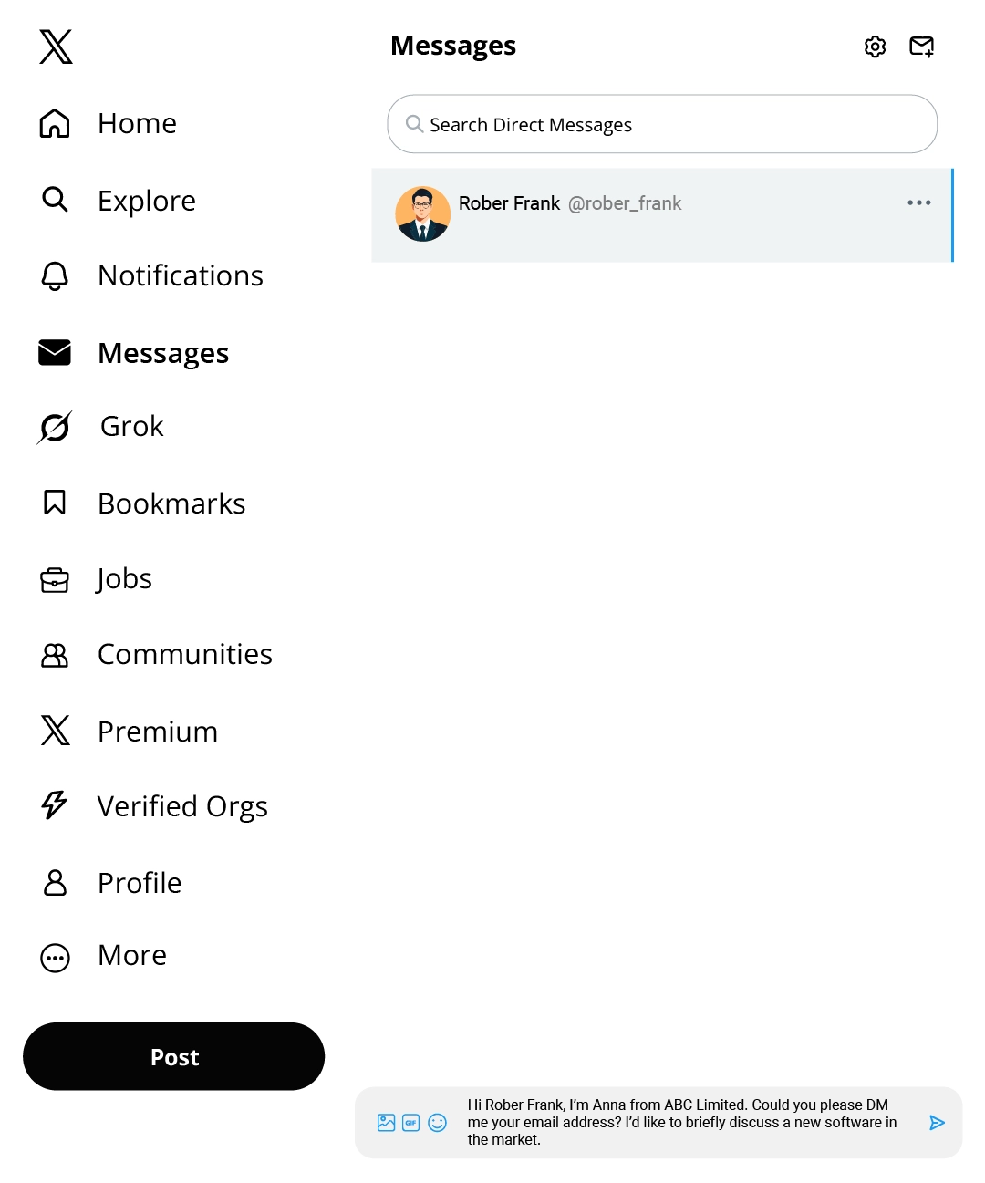 For instance: Hi John, I’m Anna from ABC Limited. Could you please DM me your email address? I’d like to briefly discuss a new software in the market.